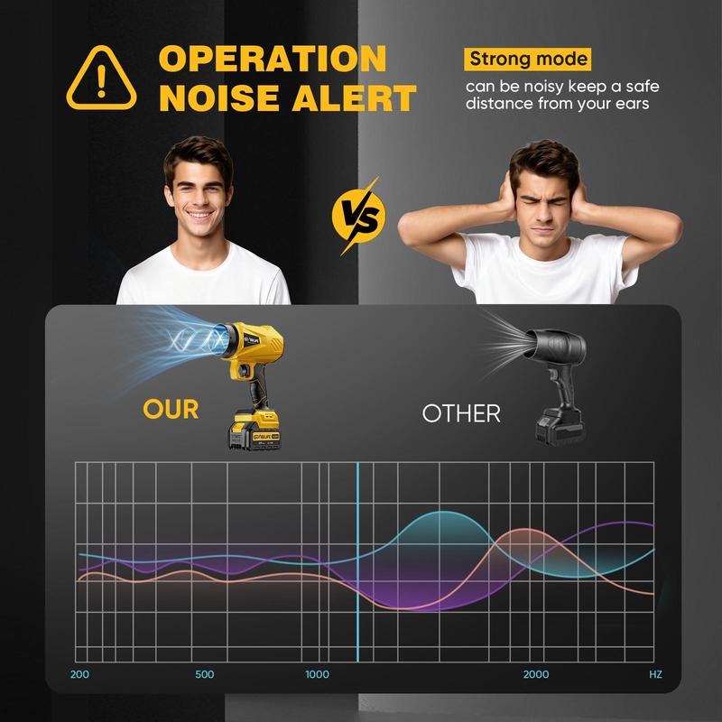 🔋 200W Cordless + 2 Batteries, Non-Stop Blowing Power